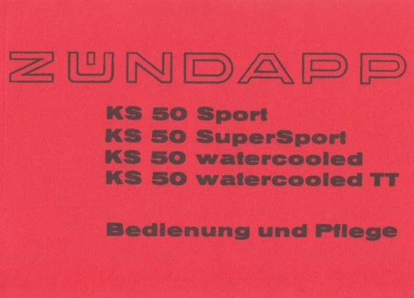 Betriebsanleitung für Zündapp KS 50 Sport/ Cross/ Super Sport/ Water-cooled/ watercooled TT. Typen 530-510, 530-500, 530-010, 530-011, 517-51 LP, 517-53 LB, 517-53 LA, 517-52 LA, 6,25 PS, 5-Gang, Inhalt: Speichen-und Gussräder, fahrtwind-und wassergekühlt, Fußschaltung. Für Modelle 1967-1976, 36 Seiten, DIN A6