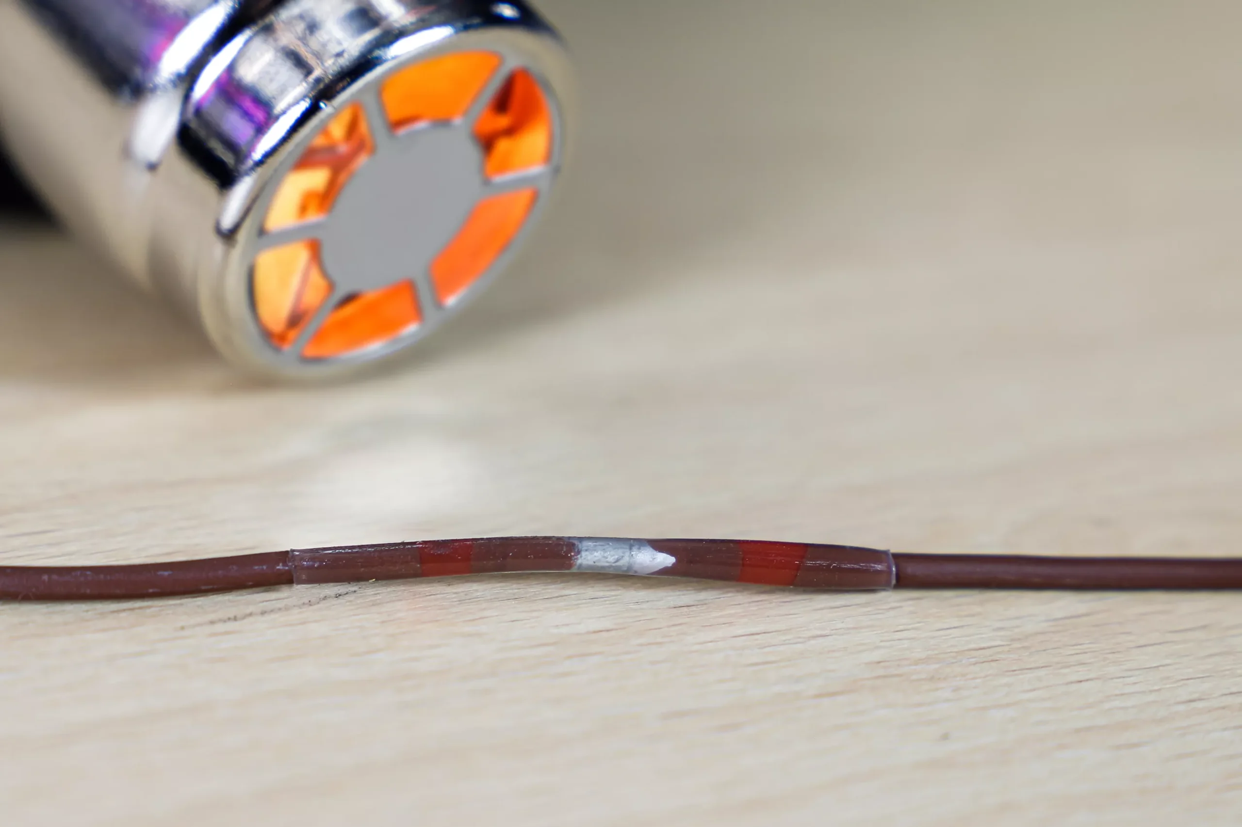 • durch Erwärmen mit einem Heißluftgerät verbindet das Lötzinn im Innern dieser Isolierverbinder die Kabelenden