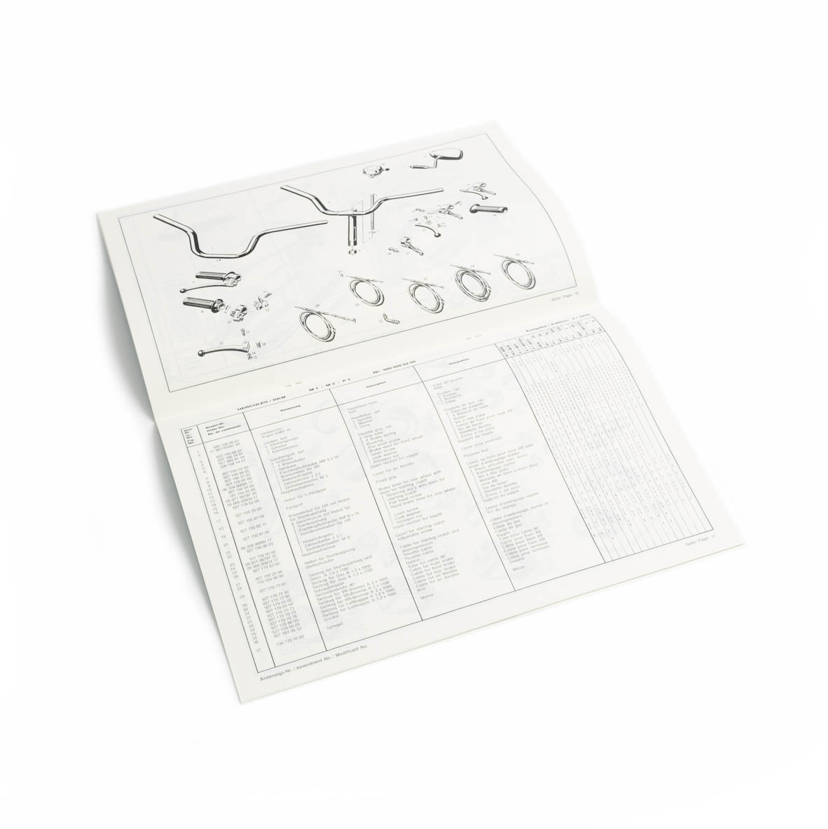 Enthält Explosionszeichnungen, Originalnummern und Teilebeschreibungen für Hercules/DKW-Modelle: