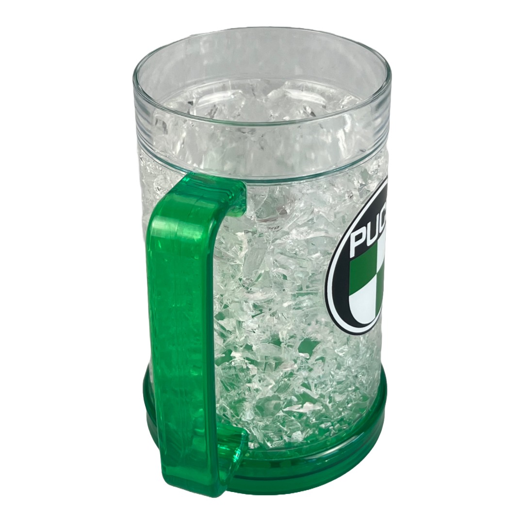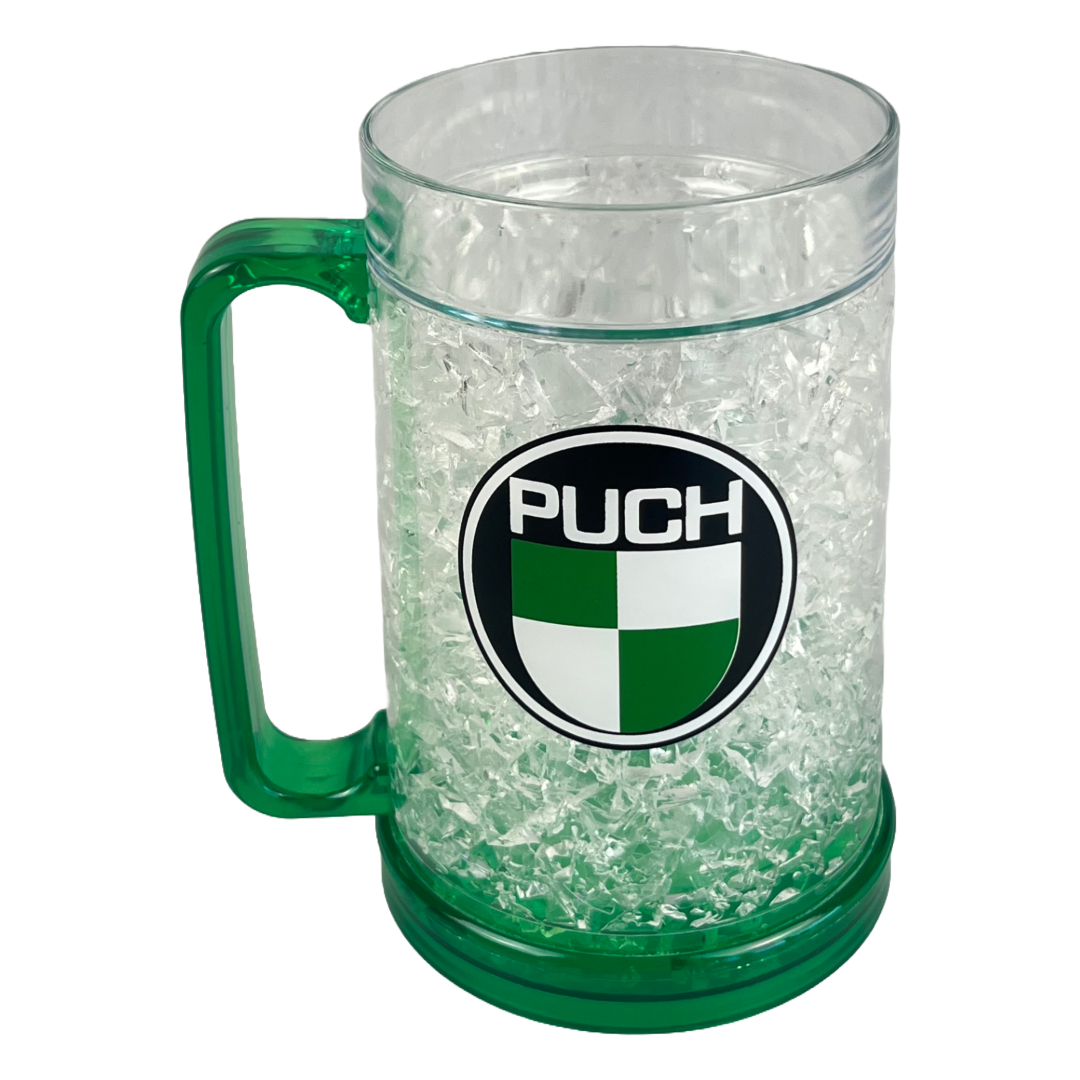 Schöner Puch Bierkrug 450ml der sogar kühlt, einfach 2-4 Stunden in die Gefriertruhe legen und dann das kühle Bier geniessen.