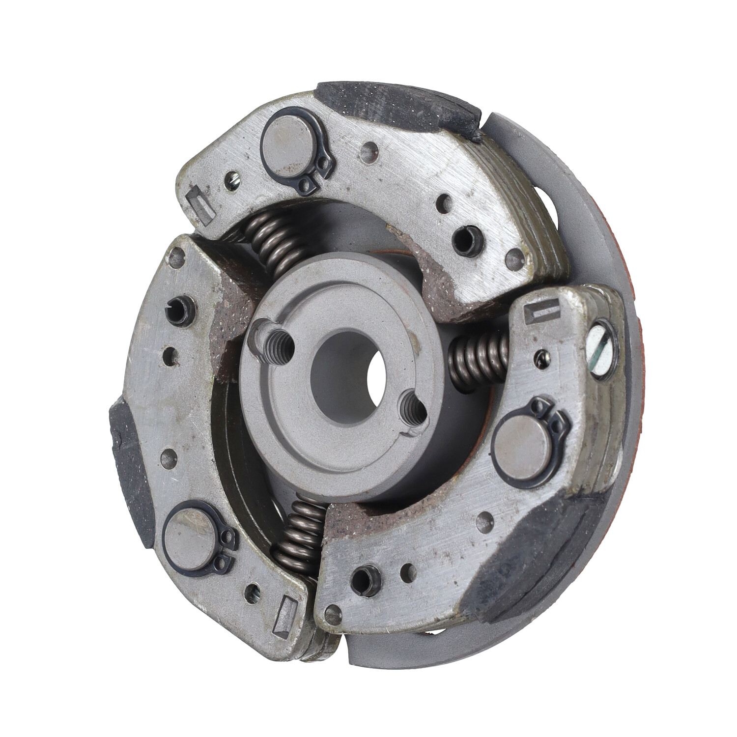 Die Kupplung ist mit verbessertem Belagmaterial ausgestattet, das für gleichmäßiges Einkuppeln und eine deutlich längere Lebensdauer sorgt. Zusätzlich kommen verstärkte Gummipuffer auf der Innenseite zum Einsatz, welche Vibrationen reduzieren und die Haltbarkeit weiter erhöhen. Die Qualität ist vergleichbar mit der originalen Kupplung.