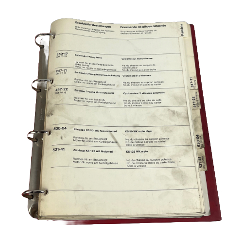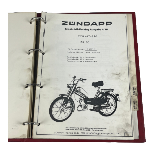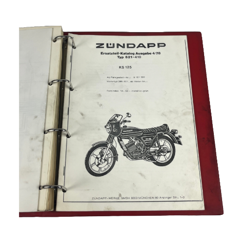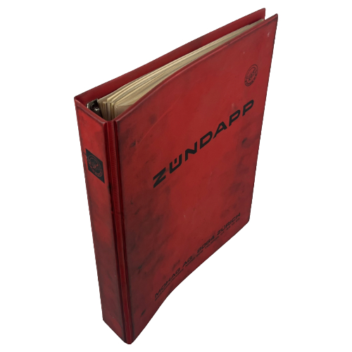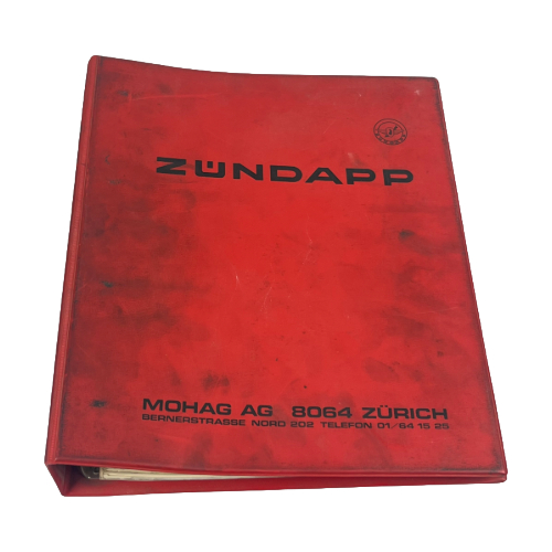 Originaler Zündapp Ordner von der MOHAG AG ( Schweizer Version). In einem guten Zustand hat aber leichte schwarze Flecken weil das Buch in der Werkstatt gebraucht wurde.