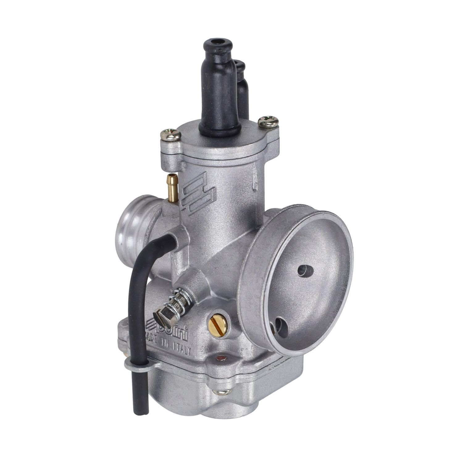 Der Polini CP Vergaser wird per Klemmanschluss auf den Ansaugstutzen montiert. Bitte vor dem Kauf Ansaug- und Luftfilteranschlüsse prüfen. Eine individuelle Bedüsung je nach Setup (Zylinder, Auspuff, Luftfilter) ist erforderlich.