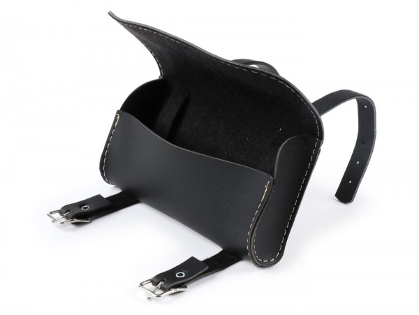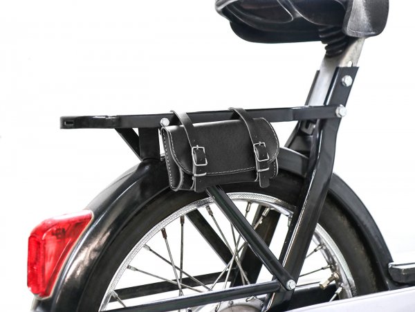 Ultrapraktische Tasche die mittels Haltebändern am Moped schnell und einfach befestigt werden kann.