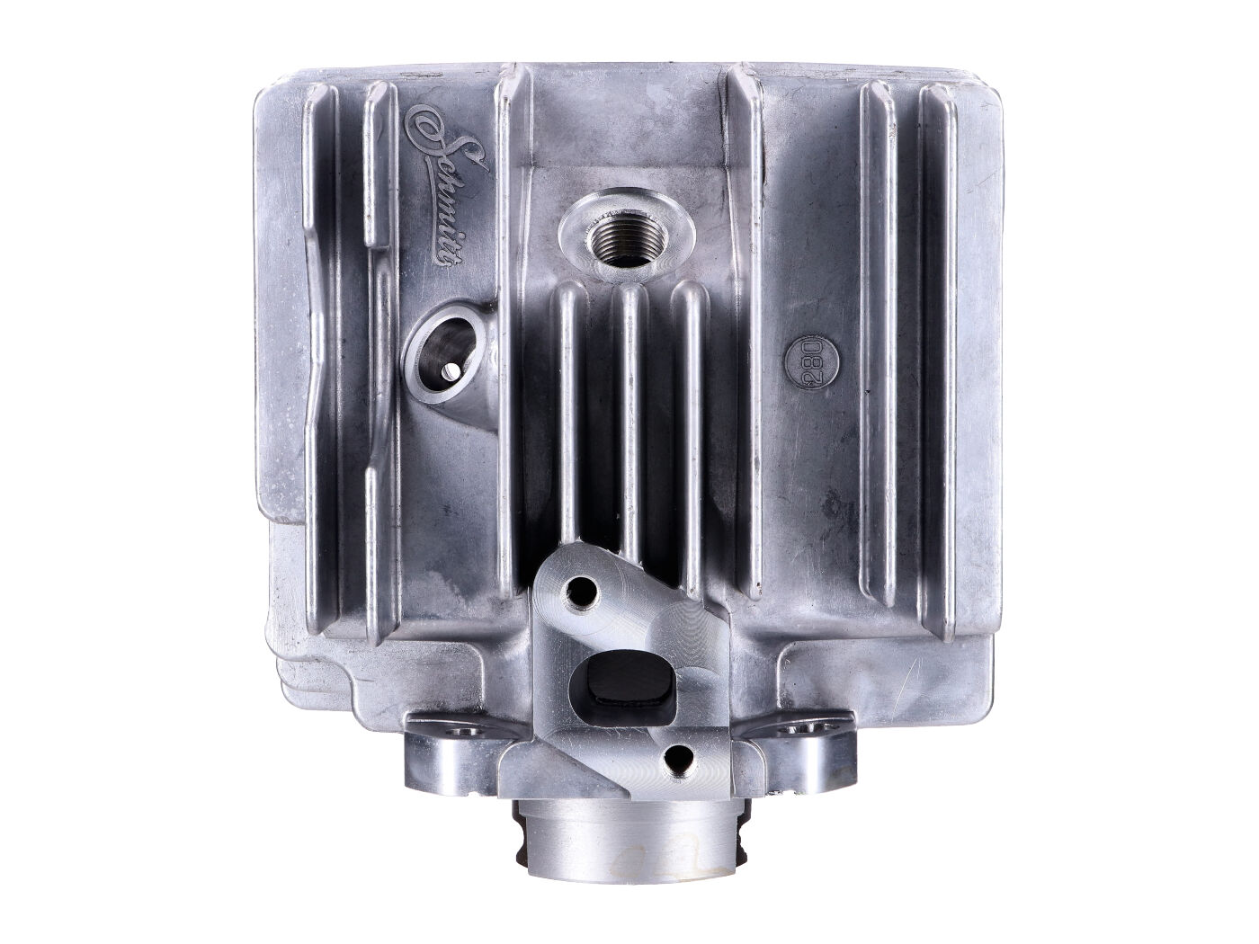 Von Grund auf neu designter Zylinder in Originaler Optik mit geraden Anschluss zum Ansaugstutzen. Keine Kopie von der Kopie. Den Fokus hat Schmitt hier ganz klar definiert: gewohnte Qualität, moderne Fertigung und das im alten Look. Für beste Performance empfiehlt Schmitt diesen Zylinder mit einem 85/10 Mofa Vergaser zu fahren.