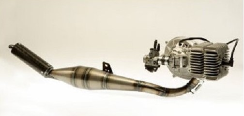 Neuer Motor für CIAO, BRAVO, BOXER, SI, mit 4 Bolzen, Bohrung 47,60 mm, Hub 46 mm, Leistung 16 PS bei 13.000 U/min, elektronische Zündung, verstärkte Stahlkupplung, Auspuffanlage mit 5 konischen Erweiterungen und Carbon-Schalldämpfer, Dellorto-Vergaser mit 21 mm Durchmesser und Membranansaugung.