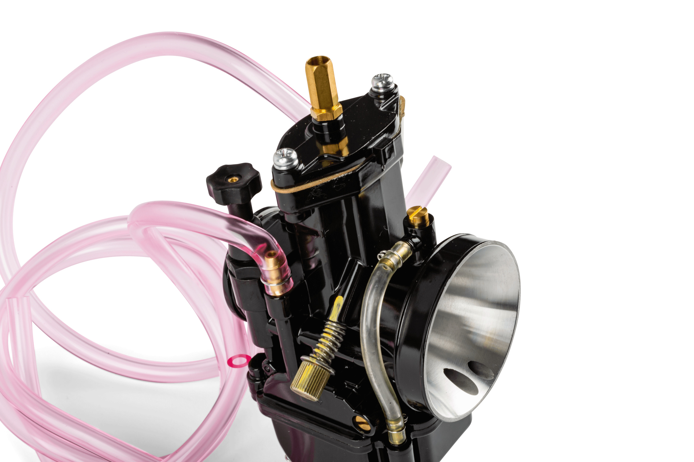 Der polierte, ausgedrehte Ansaugtrakt sorgt für eine bessere Luftströmung und damit ein verbessertes Ansprechverhalten des Motors. Die Außenmaße des Vergasers sowie die Ansaugstutzenanschlussweite (35mm bzw. 39mm bei der 30-, 32- und 34mm Variante) wurden für eine einfachere Montage reduziert. Zudem lässt das schwarze Racingfinish den Vergaser besonders edel erscheinen. Und natürlich ist auch dieser PWK Vergaser mit einer Powerjet-Düse ausgerüstet.